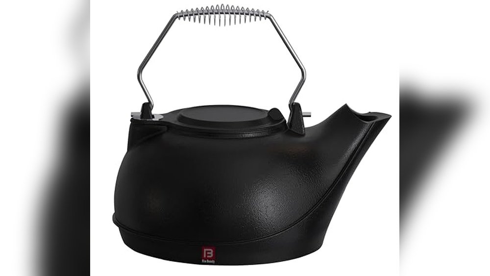 A cast iron kettle holds heat for a long time. It is strong, lasts many years, and adds flavor to tea. Many people prefer it for these reasons.