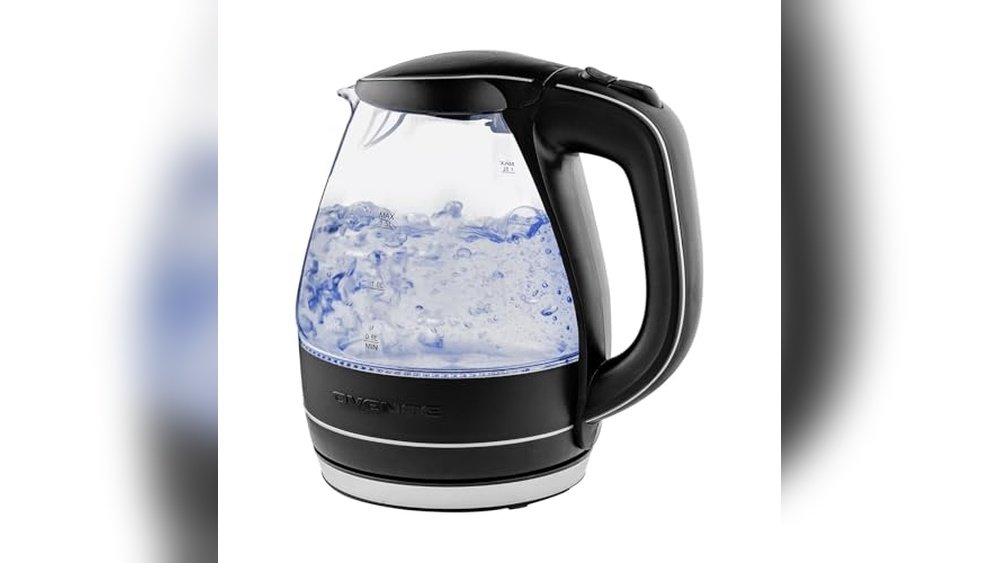 OVENTE Electric Kettle, 1.5L Borosilicate Glass Countertop Water Heater and Boiler for Coffee or Tea, BPA-Free, Auto Shut-Off, Boil-Dry Protection, Removable and Washable Spout Filter, Black KG83B